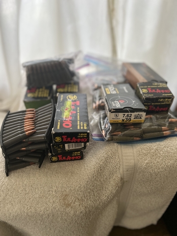For sale 80 rds Tula on stripper clips, 40 rds Russian hp on stripper clips, 4 20rd boxes of Tula and one box of monarch, 2 forty rd boxes of Tula, 109 rds loose Tula ammo, one box pmc brass cased ammo $215.00 over 400 rds.