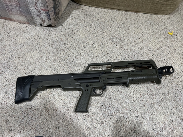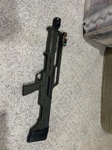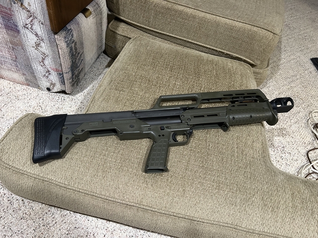 Kel-Tec KS7 shotgun with HiTech Howitzer muzzle brake and recoil pad. Has upgraded aluminum follower. Sells with o-light. Holds 6+1.