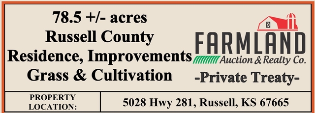 PRIVATE TREATY: 78.5 +/- acres Russell County Residence, Improvements, Grass & Cultivation