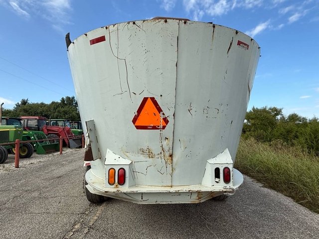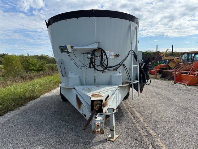 Twin screw, left hand discharge, small 1,000 PTO, scales and hydraulic fold chain conveyer. This is a good, solid vertical mixer and it's ready to go to work. Shipping available anywhere in the United States. Please call us at 620-736-2038 for more information or to come look at it. Also, please visit our website at www.riggstractorcompany.com to view our current inventory.