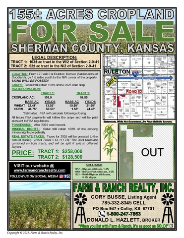 155± ACRES CROPLAND - SHERMAN COUNTY, KS