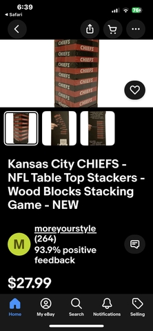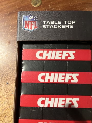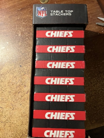I have a NEW Chiefs table top stacker. Sells for $27.99, adking $10.00 Makes a great Christmas present.