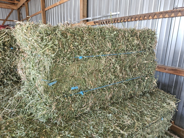 2025 Alfalfa small square bales, 2nd cutting, pre-bloom, twine tied, exceptional quality hay, sprayed for bugs, first come first serve, text preferred 785 632 1513