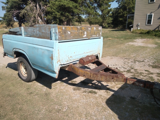 It's ugly but it pulls great (70 on the highway no problem) and you won't need to worry about hurting it when you chuck something in it. 2" ball hitch, dual safety chains, good jack, decent tires, when its empty you can pickup the tongue by hand, dont know if the lights work it has a different plug then my truck. Cash and/or trades considered for trailers, trucks, tools, Stihl stuff. Location rural Miltonvale KS.