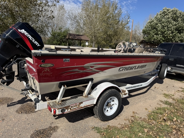 For sell 17.5 aluminum CRESTLINER fish hawk. If u are looking for a fancy boat this is not it if u are looking for a boat that runs and starts right up every time u go this is your boat. I ah e owed the boat for almost 6 years and boat has always ran great I did have new steering cables put on last year and new boards and carpet for trailer. Boat has 90hp mercury oil injection push the boat around 40 mph and has a 2018 9.9 mercury 4 stroke both motors need nothing both run great there is controls for both motors up front. Boat has a 24 volt trolling motor and is linked to the Heix 7 in the front of boat and at the helm there is a year old garmin 10 at the helm. There is a big live well and a bait live well tons of storage. All batteries was new a year ago and there are two onboard chargers on the boat as well. The only reason we are selling is to buy a bigger boat. If I can not sell for what I want for it I will keep the boat.