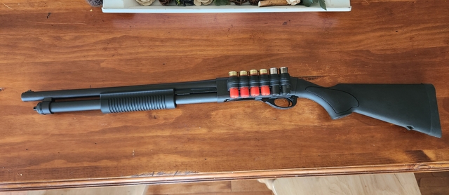 Remington 870 tactical. 12g with Mesa tactical shell holder. 6+1 capacity. Like new condition, no rounds through it.