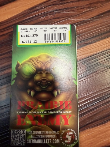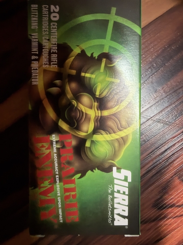 Sierra 224 Valkyrie 69GR blitzking. This is a great shell for Varmints/predators
