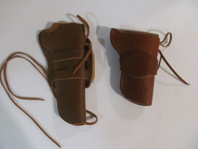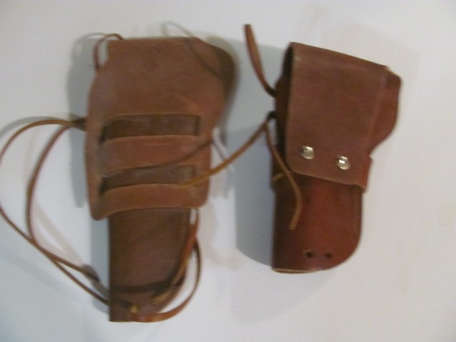 Two holsters one is approx 6inch long the other 9inch.Probably meant fo .22 guns.Good leather as new.$35.00 for the pair OBO