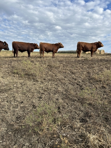 15 month old Red Angus and Red Angus/Simmental cross bulls for sale. Bulls suitable for heifers as well as herd bull prospects available. All bulls worked and have passed breeding soundness exam. AI sons of Bieber Blue Chip, Calvo Chino 102F, and Honor Guard.
