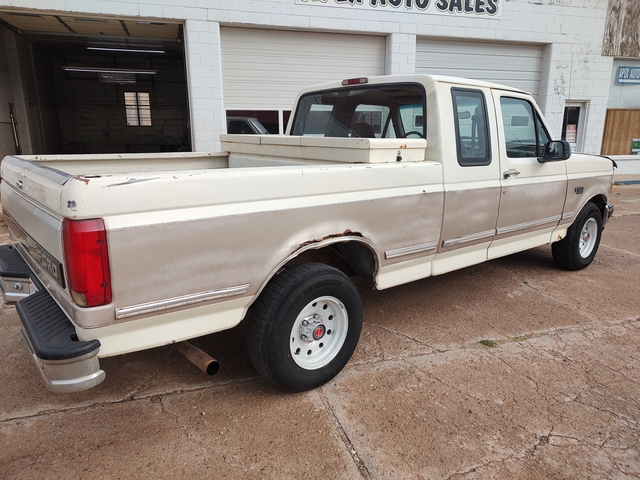 **For many more pictures please visit my website apex-autosales.com** This 1994 Ford F150 XLT extended cab is in good/fair condition with 167,074 miles. It has the 5.0 liter (302) engine and 4 speed automatic both in great operating condition. The transmission has just been rebuilt and works great. It also has a Trans-go shift kit installed. It also has a new power steering pump, new steering gear box, new serpentine belt, and has just been serviced with Mobil1 synthetic oil and Wix filter. The muffler was gone when I got it and I jut put a new pipe in its place. Its not too loud, sounds just right. It is clean Kansas title but does have a total loss recorded in California at 10,000 miles that was never carried over before going to a Nebraska title, then Kansas. Body and interior are both in fair condition. It would make a great trash hauling pickup or a run around town pickup. It is 31 years old so its not perfect by any stretch. Check engine light and airbag light are on. Also cruise doesn't work...it needs a clockspring and I think that would fix cruise and the airbag light. It is OBD1 so I don't know what the check engine light is. A/C works great as well as the radio. It has a little rust in the right front fender and both bedsides above the wheel as seen in the pictures. The tires probably have around 75 percent tread left. We are a small dealer located in Coldwater KS in business since 1999. If you have any questions at all do not hesitate to give me a call and I will do my absolute best to help you. Monday thru Friday 9am-5pm 620-582-2740. After hours and weekend cell 620-635-5791. Give me a call....I am at my lot during the day and can usually meet up anytime nights or weekends also.