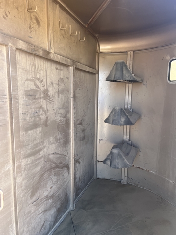 I purchased this trailer new. It has a good floor and good tires. I sprayed the bottom 2' of the inside with Herculiner bed liner. It has a solid, slant wall for the tack room. You an haul 3 saddles horses, no problem. Except for a few headliners, all the lights works. Call or text 620-408-7987 for more info.