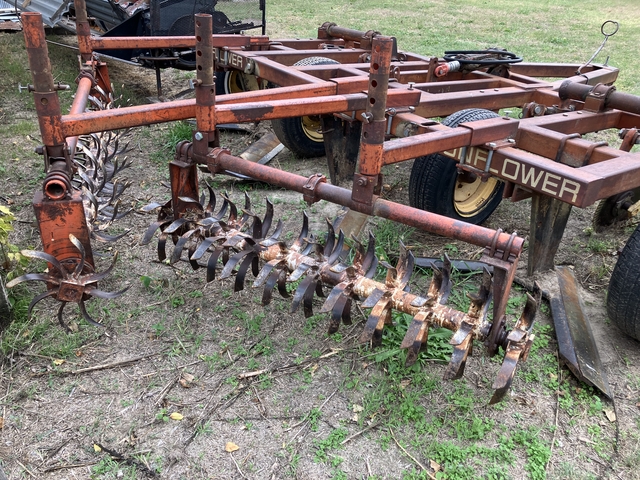 Full 12 foot Sunflower V-blade. This unit has a center 5 foot blade and a 4 foot blade on each side. All blades were replaced a few years ago and are in excellent condition with no chips. Also had rotory hoe on back that is fully adjustable. If interested, text 3086278526