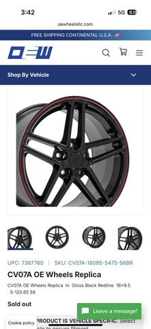 18” O.E Corvette Z06 wheels, New In Box! Back are 18x10.5, front are 18x9.5. These are black with the red ring. Bought with a car and want to stick to the original rims. $1000 obo.