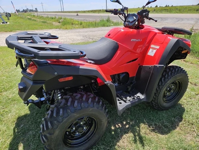 Details: Class G compliant for ages 16 and up, Fuel injected 501cc DOHC 4-stroke, 4-valve, single cylinder liquid cooled engine, CVT automatic transmission with low, high, neutral and reverse gears with park function and engine braking, Durable 4-wheel independent suspension for sure-footed handling in rough terrain, On-Demand 2WD/4WD with differential lock and shaft drive, Linked hydraulic disc brakes with park locking feature, 5-position preload adjustable shocks, Dual low-and-high beam headlights with LED markers and dual rear brake lights, USB Charging Port, Front and rear steel tube cargo racks, 2” receiver for mounting a standard trailer hitch, 941 lbs. towing capacity, Built-in storage compartments in each front fender and center console, and a Relocated fuel cell for improved weight distribution and stability.