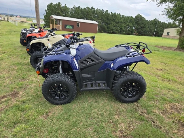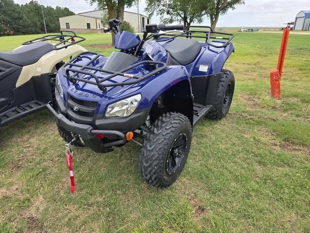 Details: Class G compliant for ages 16 and up, Fuel injected 443cc SOHC 4-stroke, 4-valve, single cylinder liquid cooled engine, Sealed air intake filter system for keeping the air filter clean and dry, CVT automatic transmission with low, high, neutral and reverse gears and engine braking, Durable 4-wheel independent suspension for sure footed handling in rough terrain, On-demand 2WD/4WD with differential lock and shaft drive, Linked hydraulic disc brakes with park locking feature, 5-position preload adjustable shocks, Dual low-and-high beam headlights with LED markers and dual rear brake lights, Steel front bumper, Front and rear steel tube cargo racks, 2″ receiver for mounting a standard trailer hitch, 802 lbs towing capacity, and Underseat storage.