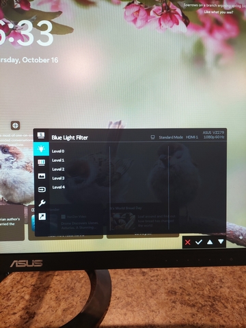 This is a 27-inch Asus VZ279 Eye Care monitor with frameless design and an integrated five-level blue light filter. Super slim panel. I used it for around 18 months before putting it storage. No dead pixels or problems whatsoever. It has a generous tilt built into the stand. See back photo for ports.