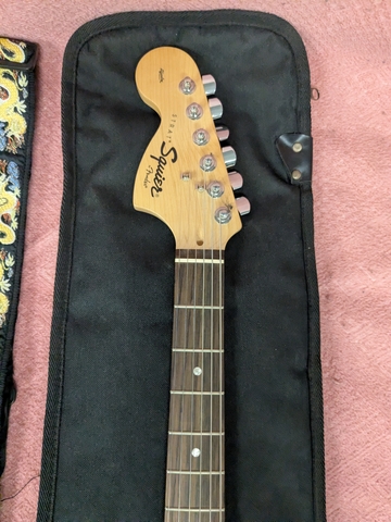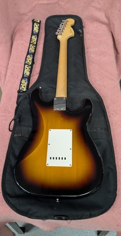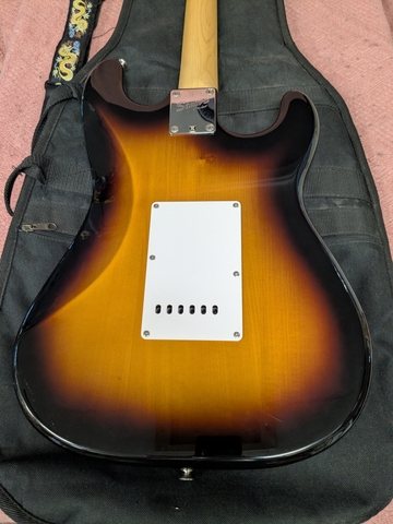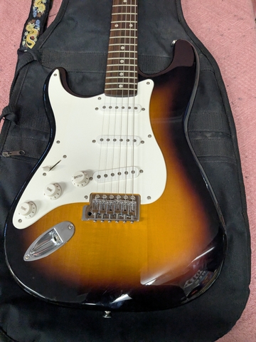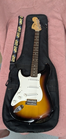 I have a left hand Fender Strat Squier 6-string guitar for sale. Beautiful condition. No chips or breaks. I think they call this color tobacco color. Sounds good plays fine. Comes with Fender bag and dragon strap. Asking $200. Check out my other guitars for sale please. Pick up in Miltonvale Kansas. This is 45 minutes Northeast of Salina. May be able to meet if I'm headed your direction.
