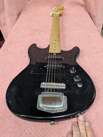 Here's a six-string parts guitar for sale. The body is a Harmony. The neck and head is a blaze. Chips and scratches. No sound when hooked to an amp. Missing screws. Be good for parts or hang it up in the man cave. Check out my other guitars please. Asking $20. Pick up in Miltonvale. This is 45 minutes Northeast of Salina. May be able to meet if I'm headed your direction.