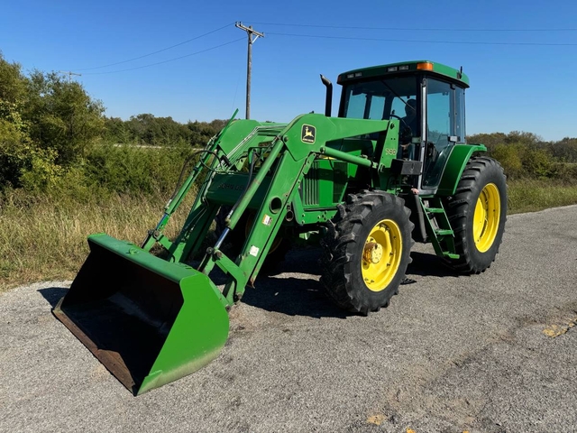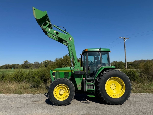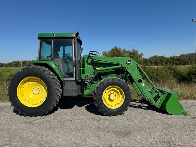 110 HP, 16 speed power quad transmission with left hand reverser, 3PT, dual PTO and triple hydraulic remotes. This 4-wheel drive tractor has a JD740 loader with quick attach bucket & joystick. The cab interior is new and has heat & air. This is a nice, original tractor with 7,380 original hours, original paint and just came off the farm. This machine runs and operates very good and is ready to get to work. Shipping available anywhere in the United States. Please call us at 620-736-2038 for more information or to come look at it. Also, please visit our website at www.riggstractorcompany.com to view our current inventory.