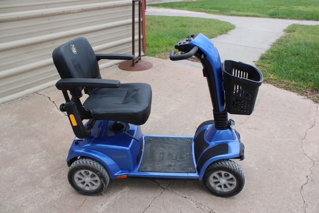 Gently used Golden Companion full size 4 wheel scooter, Model #GC440. It has full front and rear suspension and a max weight capacity of 400 lbs. Scooter itself weighs 222 lbs. Comes with battery charger and front basket. Asking $1000 CASH ONLY, OBO.