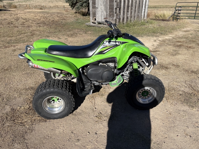 Price reduced 2004 Kawasaki kfx 700 v force very clean machine adult ridden well taken care of carb clean and gone through this past summer runs great pro circuit dual exhaust super fast comes with flag and extra set of wheels with sand tires(sand tire are weather checked) $3300 obo open to partial trades looking for skid steer or loader tractor call or text 719 three4three 153five