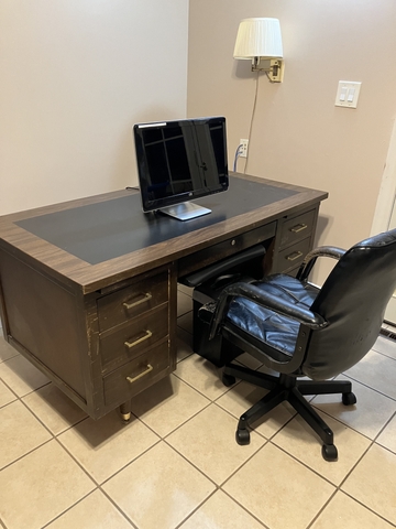 Description: Upgrade your workspace with this sturdy and spacious desk, perfect for home offices, students, or hobbyists. Features multiple pull-out drawers for organized storage and a smooth sliding keyboard tray for ergonomic comfort. Solid construction with a clean finish. Gently used and in great condition.