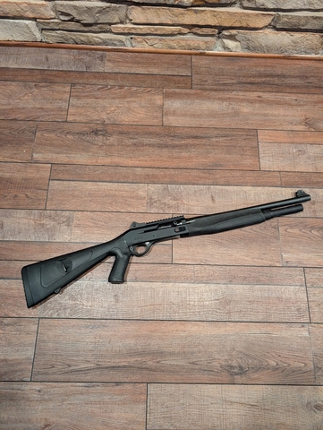 Made in Italy, by Breda, who co-developed the M1&2 with Benelli.Has a Nordic tube extension installed.Ghost ring sights, picatinny rail.