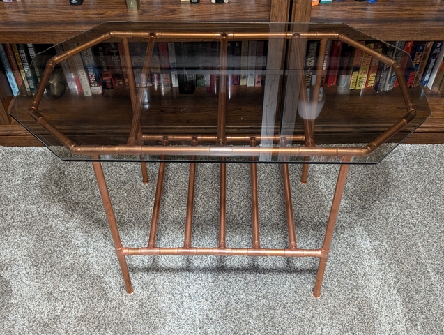 copper and glass table with cut ends