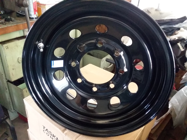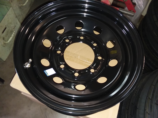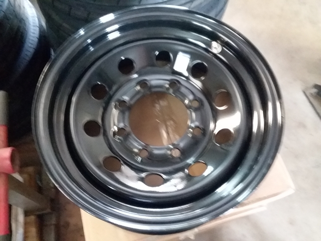 8 LUG 16 X 6 ON 6.5 BLACK - COME WITH HIGH PRESSURE STEEL VALVES