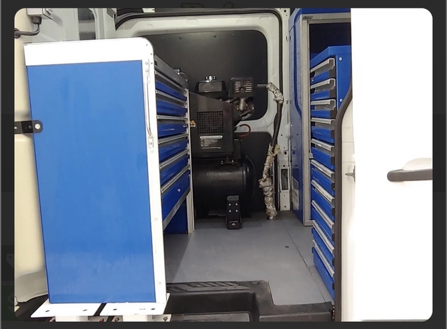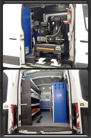 This van comes equipped to WORK! Check out the racks, tool boxes, and on board air compressor set up!