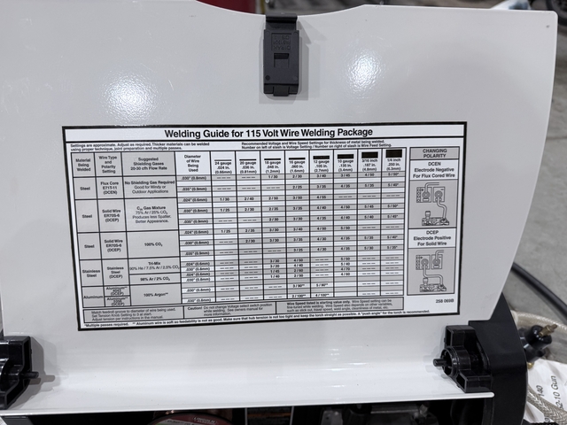 Includes welder, new 2lb spool of .030 solid wire, partial spool of flux core wire, gun consuables (all for .030 solid wire), Jackson hood and spare lens, gas regular / gauges and all related tubing.