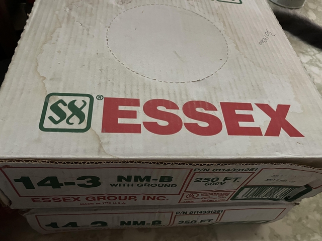 New box of 14-3 w ground. Much cheaper than Home Depot, etc.