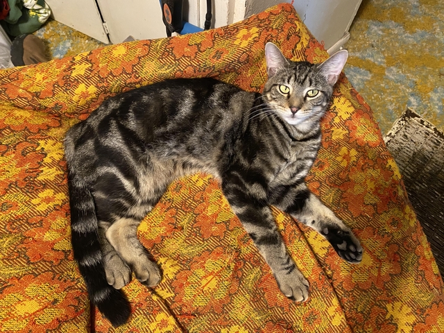 Missing black and gray male cat. He has been chipped and neutered. He is a younger cat, a year and a few months old. He has been missing from 1216 north fossil street in Russell since September 18. $100 reward, call or text Lisa at (785) 324-0648