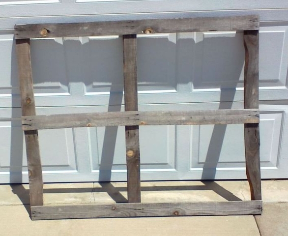 Weathered Window Frame - $8.00 Art/craft style wood frame in the style of an old weathered window frame. Ideal for hobby/craft options to decorate or to use with framed art. The size of is 5’ x 4’. The size of the individual squares are 21” x 15” & 18” x 16”
