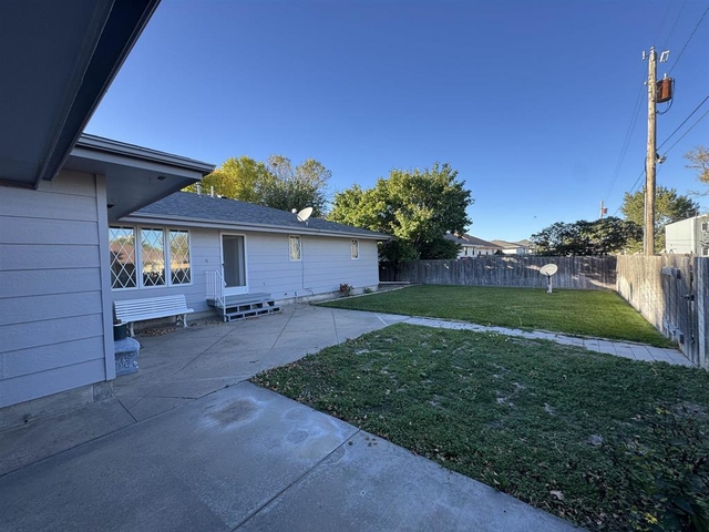 Great ranch home with over 1600 Square feet on the main level. 4 bedrooms and 3 bathrooms total. Open kitchen, dining and living concept. Large cabinet on South wall of Living Room stays. Large main floor utility. Lots of built-in storage. Freezer stays. Close to schools and hospital. Double attached garage PLUS a single attached garage with lift if needed to assist in getting into the home. Large patio, shed, fenced backyard, automatic sprinkling system front and backyards, and water well.