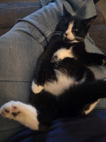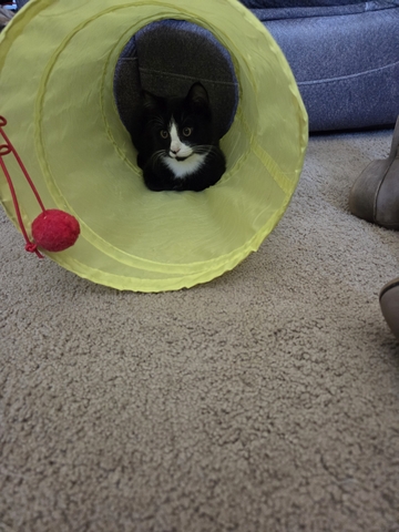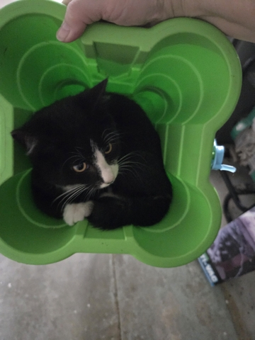 Free indoor kitten. He was abandoned by the mom & guessing around 4 months old found August 2 & eyes were open already & have been hand raised by my mom. 785-432-1453. I want to find him a home if not will go to Humane Society. I would rather be the one to find him his forever home. He loves to get into the sandbox bucket & in the cat tunnel at first he is skiddish but also warms up quickly & loves to be held but also likes to hide. He has only been with me for little over a week but is starting to open up. He is eating solid food but love wet food mixed in it right now 1 teaspoon but is not necessary. Litter box trained. He has not been outside since he was found. I want to find this sweet baby a inside home as soon as possible.