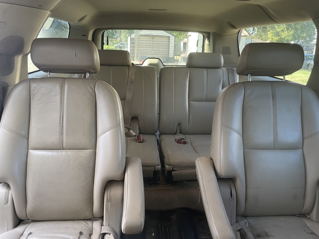 The interior is leather and several seats have rips/small tears. The console has a tear that is taped. There were two rust spots by the passenger doors that were cut out and replaced. It does have a working DVD player and a sunroof. Metal stripping on both sides is missing.