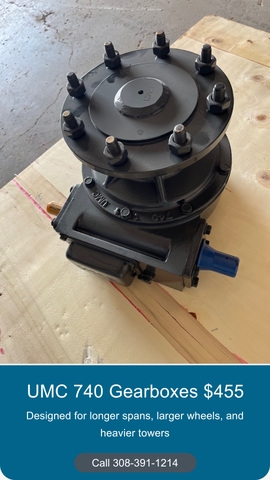 They’re $455 each and will bolt onto any Lindsey/Zimmatic, Reinke, Pierce, Olson or Lockwood pivot.