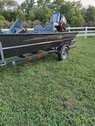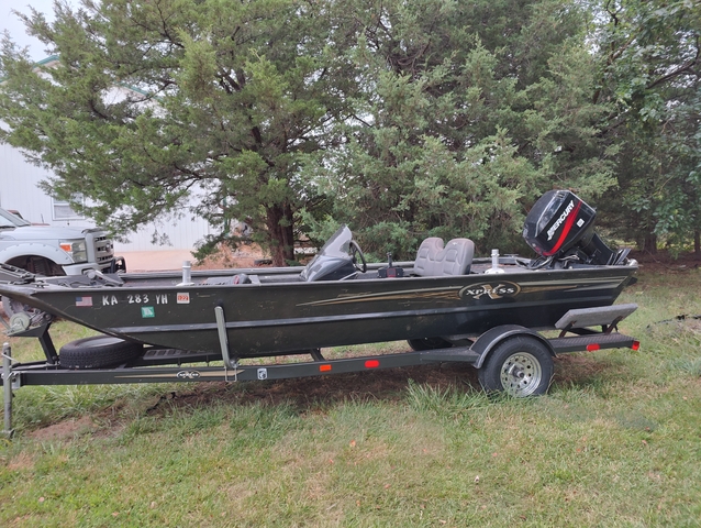 Great condition, fully functioning 02 Xpress by Alumaweld aluminum boat with a 50hp Mercury. 2nd owner, first owner had it on lakes around KC and only used the trolling motor so the engine has less than 200 hours. 2 hummingbird 4s and a new Lowrance Hook 9 yet to be installed. Older 30lb trolling motor with a usable bracket, needs an upgrade. Remote spotlight+nav lights up front. Livewell works well, bilge pump works great, but the boat doesn't leak a drop. 12v system on 3 good batteries. Scratched up from setting lines, but no major dents or stump marks. Trailer is in great condition, good tread, tires are about 5 years old. Has a full (dirty) travel cover. This has been Kansas boat it's entire life so there is no title for the boat. Will need registration renewed.