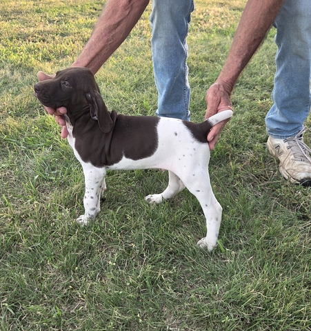 AKC Registered Male GSP pups born August 8th. Tails docked and dew removed. Good bloodline to follow there parents foot steps. Very friendly. Located in Smith Center, KS. More information call 785-282-0907. $600