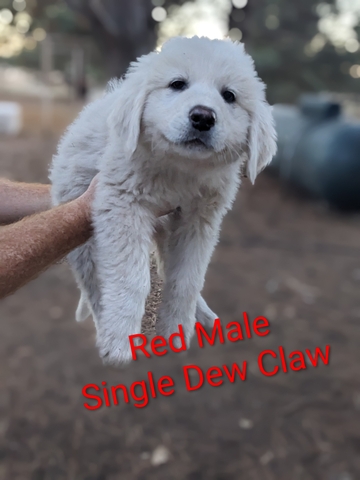 One male left. Our puppies were born September 15, 2025. They are ready for their new homes. They come from working parents (on-site) and have been raised with sheep, cattle, cats, turkeys, and Guineas. They will come with their two rounds of shots and deworming. They are wonderful livestock guardian dogs and they are great with children. Contact us here or at (559) 474-7689.