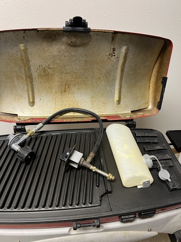 Includes water container and propane hookup. Easy to setup. Only used a few times. Always stored inside. Great for tailgates! Meet in Hays for purchase. Cash only. Call or text Dave at 785-259-6522 if interested.