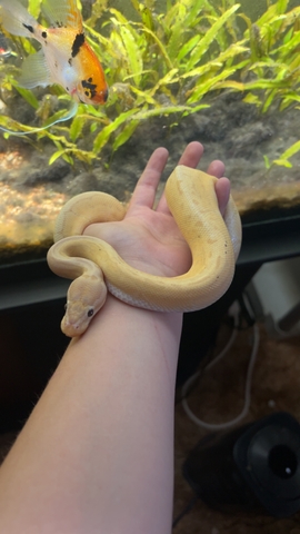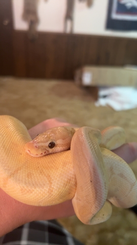 Bing is a very shy but friendly 1 year old male Banana Pinstripe Ball Python. He doesn't eat good and is shy about it. Will come with his bag but nothing else. Pretty small for his age but if he starts eating good he'll grow fine. He is about 1 foot long right now and feeding on small rats. He is completely healthy and sheds great. Asking $150, $50 off from original price. Would like proof that he's going to a good home.