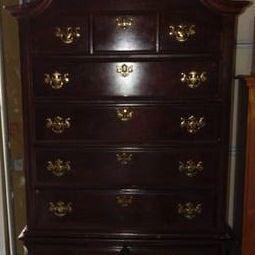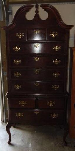 oak and mohogany color, 7 drawers solid oak, 7ft tall arched top and 1ft long legs that easilu screw off for moving easily