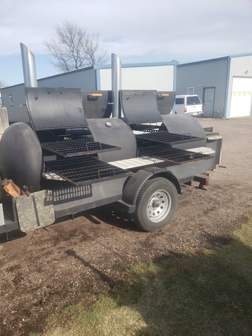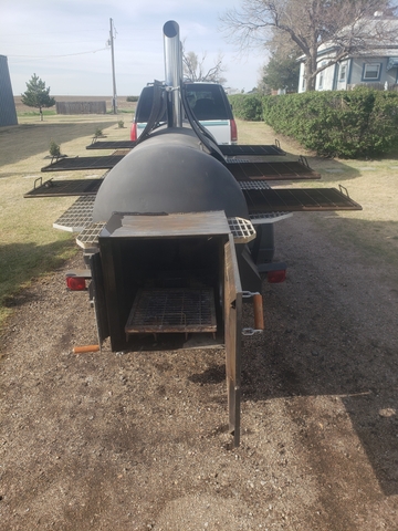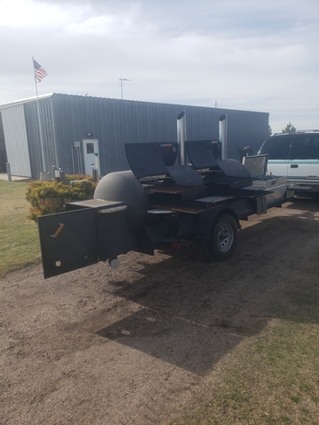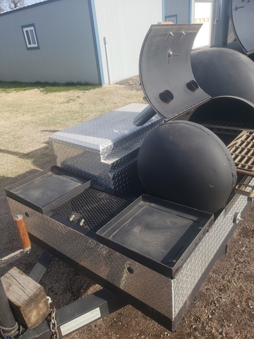 Very nice BBQ trailer, I built this unit several years ago and I do not have a need for it anymore. Worked well for me and I am sure someone will get as much pleasure as I had. Slide out racks keep you out of the smoke while tending food, small wood or charcoal grill, dual burners on the front for frying turkeys or boils. 3 propane tanks in tool box, and more items than I can list $4,500 OBO you can text or call me at 817 528 573five