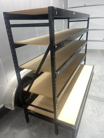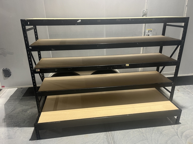 24 feet long in 3 connecting sections, 5 shelves high of free standing product shelves from a former Orscheln store. Good Condition. I just don't have room to use them.