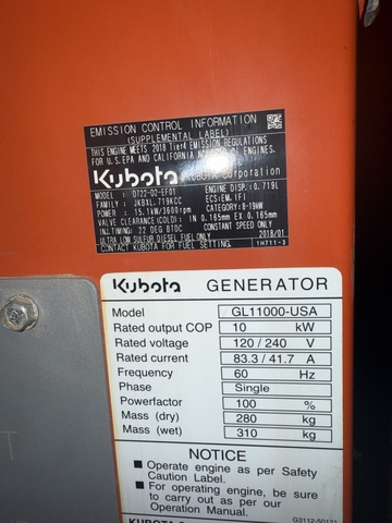 Kubota Gl11000 generator