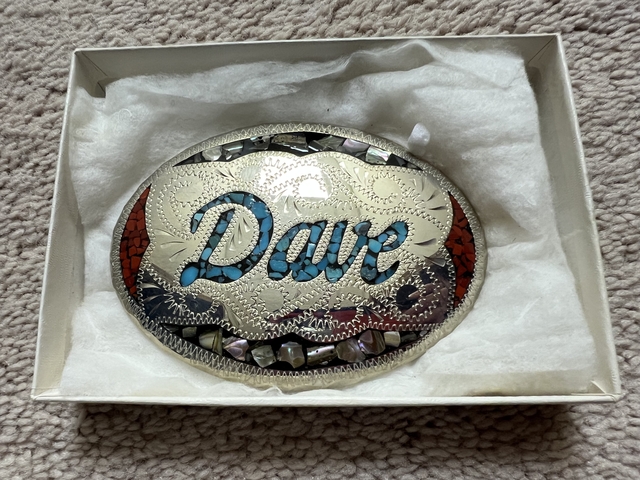 Turquoise stone Dave belt buckle - excellent condition, never been worn.Cash only. Meet in Hays for purchase. Call or text 785-259-6522 if interested.