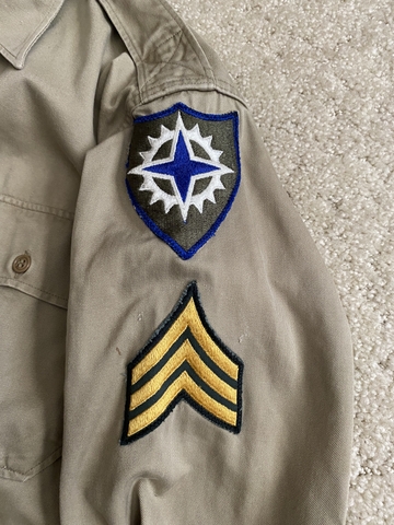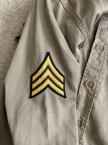 Vintage army beige long sleeve shirt with 2 front pockets.