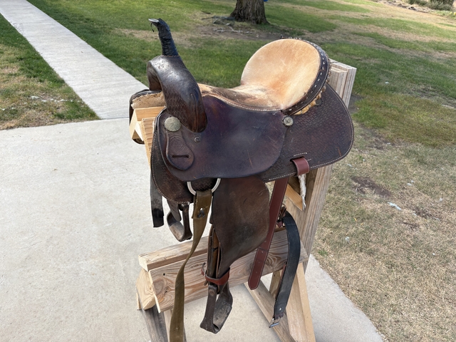 Saddle in good condition. My daughter used it to get started and now has grown out of it. Comes with back cinch and billet.